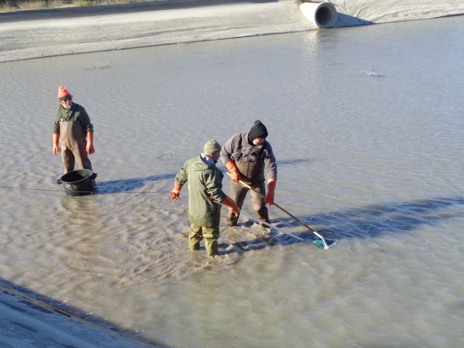 Lors de la vidange du canal les siphons restent gorgés d’eau et deviennent des zones de refuge pour une grande quantité de poissons présents dans le canal. La période de chômage va donc permettre de récupérer les poissons retenus dans le Canal au niveau des siphons et des bassins.